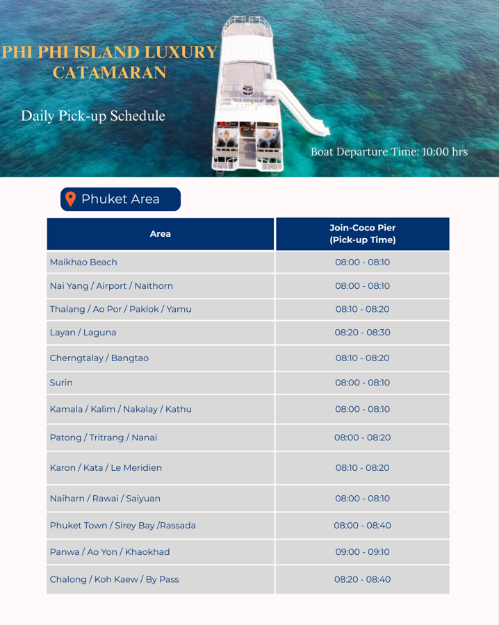 | 8:00 AM | 🚐 Hotel Pick-up & Transfer to the Pier |
