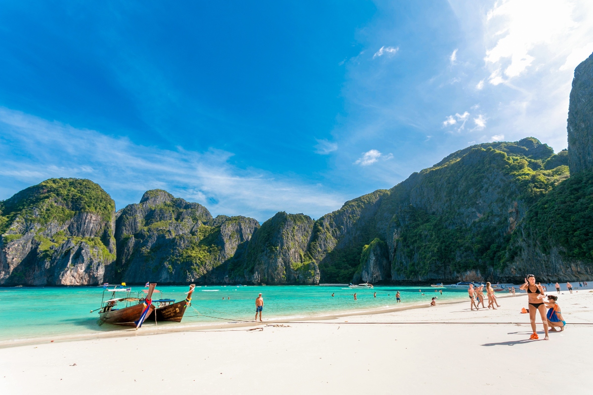 | Visit the world-famous Maya Bay, made legendary by the movie “The Beach”, surrounded by towering limestone cliffs and emerald waters. | |