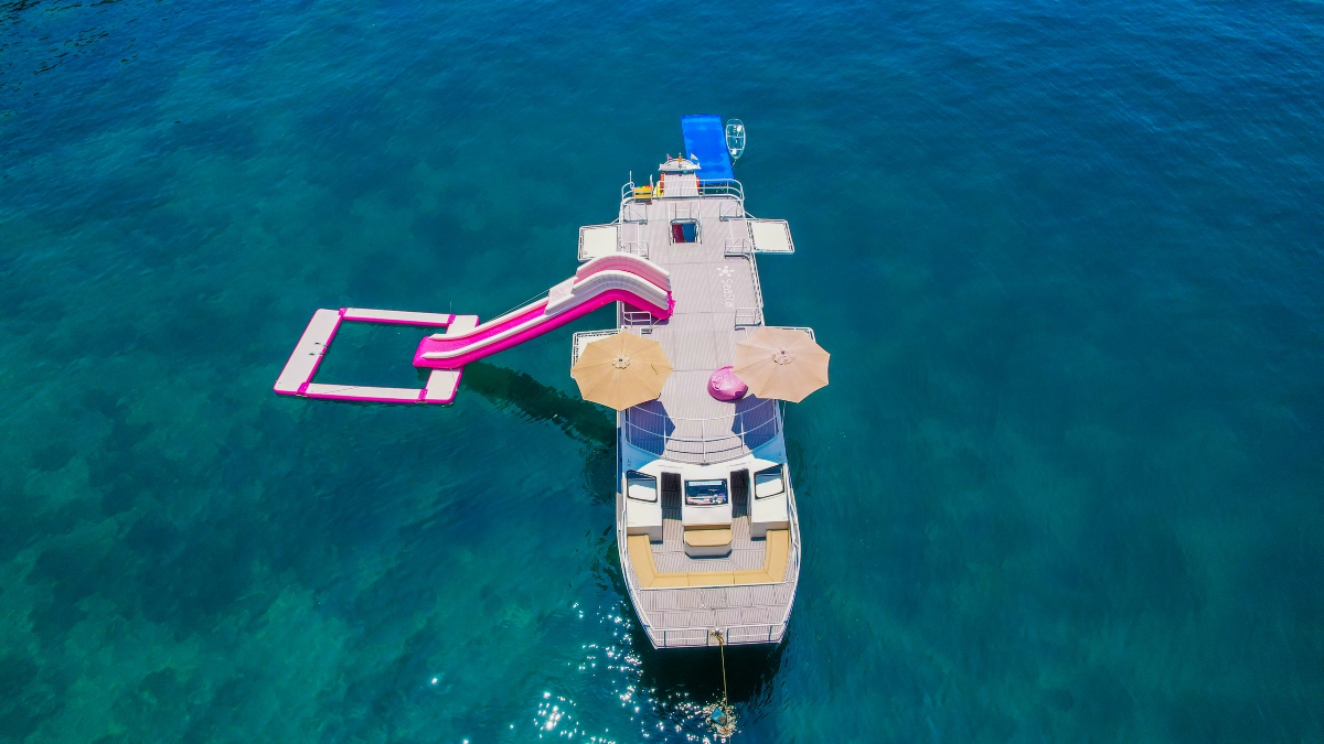 | • Enjoy water slide, paddle board, clear kayak, and floating mat | |